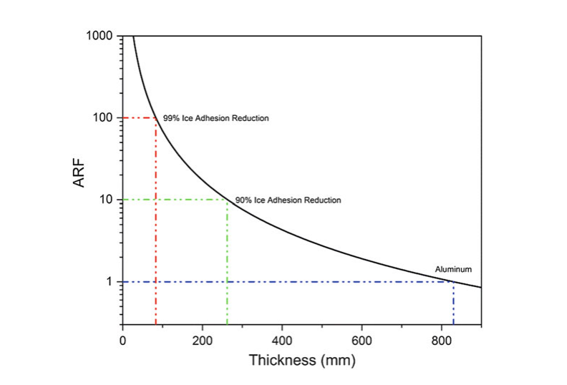 ARF越高,冰自行脫落效果越好,當ARF達到100,冰的附著力降低了99%