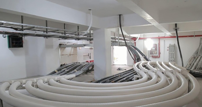 根據(jù)防火治理第三條,高壓電纜在隧道、電纜溝、變電站內(nèi)、橋梁內(nèi)應(yīng)選用阻燃電纜,其成束阻燃性能應(yīng)不低于C級。隧道、溝道,豎井、橋架、橋梁、夾層內(nèi)的非阻燃高壓電纜應(yīng)采取繞包防火帶、涂刷防火涂料等防火措施。