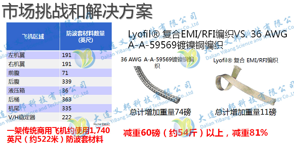 大連義邦引進(jìn)美國(guó)Syscom生產(chǎn)的金屬化高分子纖維絲Lyofil?(鍍鎳PBO纖維)作為編織主材,Lyofil?對(duì)比傳統(tǒng)鍍銀銅絲減重約73.2%,斷裂負(fù)載約是傳統(tǒng)鍍銀銅絲的11倍。源頭引入基材國(guó)產(chǎn)化先..